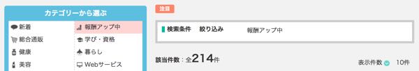 その時々で変わってきますが、「報酬アップ中」には214件の対象案件が表示されています。