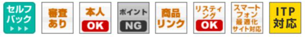 提携した案件がセルフバックに対応しているかどうかは、「提携情報の詳細」でセルフバックのアイコンをクリックします。