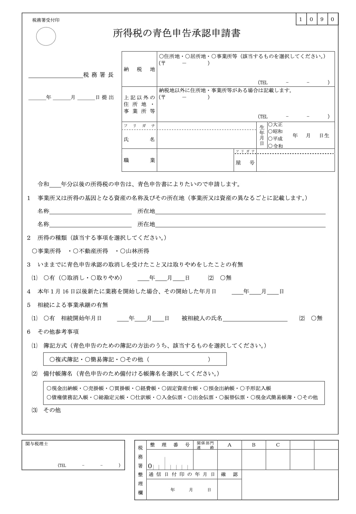 こちらの書式は、開業する事務所の所在とを管轄する税務署に提出するものです。